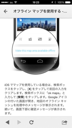 iPhoneアプリのGoogle Maps.そのヘルプにオフラインマップの使い方が書いてあった.前に,検索欄にok mapsと打って検索すると,地図がキャッシュに保存されてオフラインマップが使える,ただし日本では駄目ということを聞いていた. 今回日本語のヘルプにも…